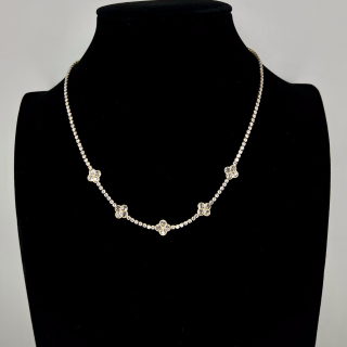 Colar dourado trabalhado em zircónias flores