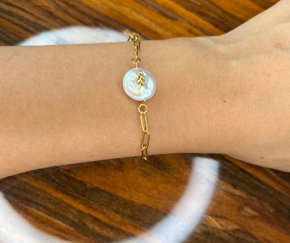 Pulseira dourada com aplique em madre pérola