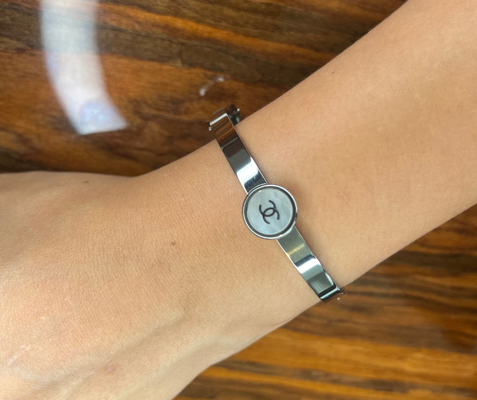 Pulseira prateada; Aço inoxidável; Círculo C.